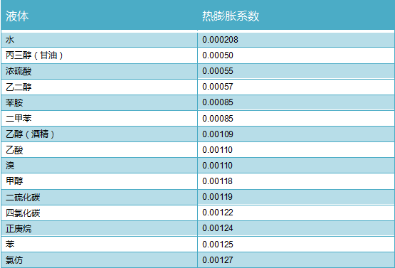 表1.常見液態(tài)試劑熱膨脹系數(shù)