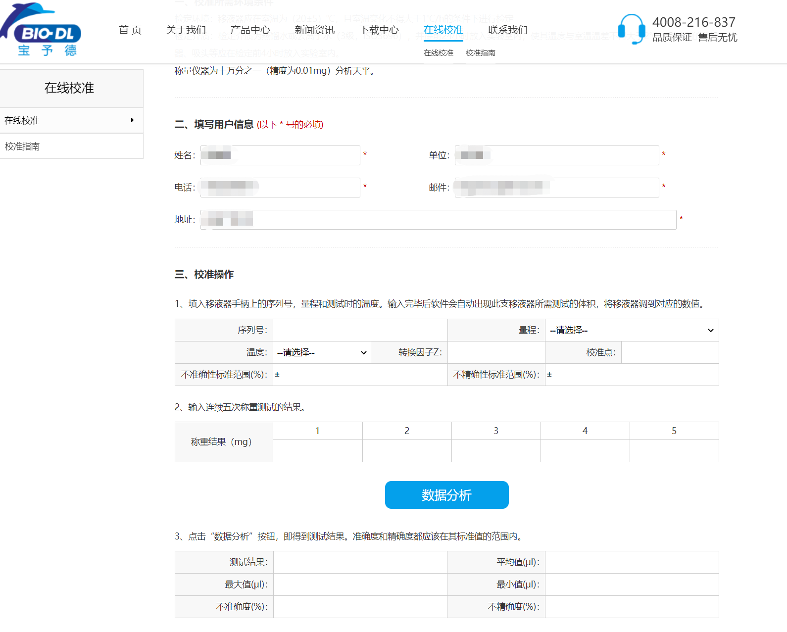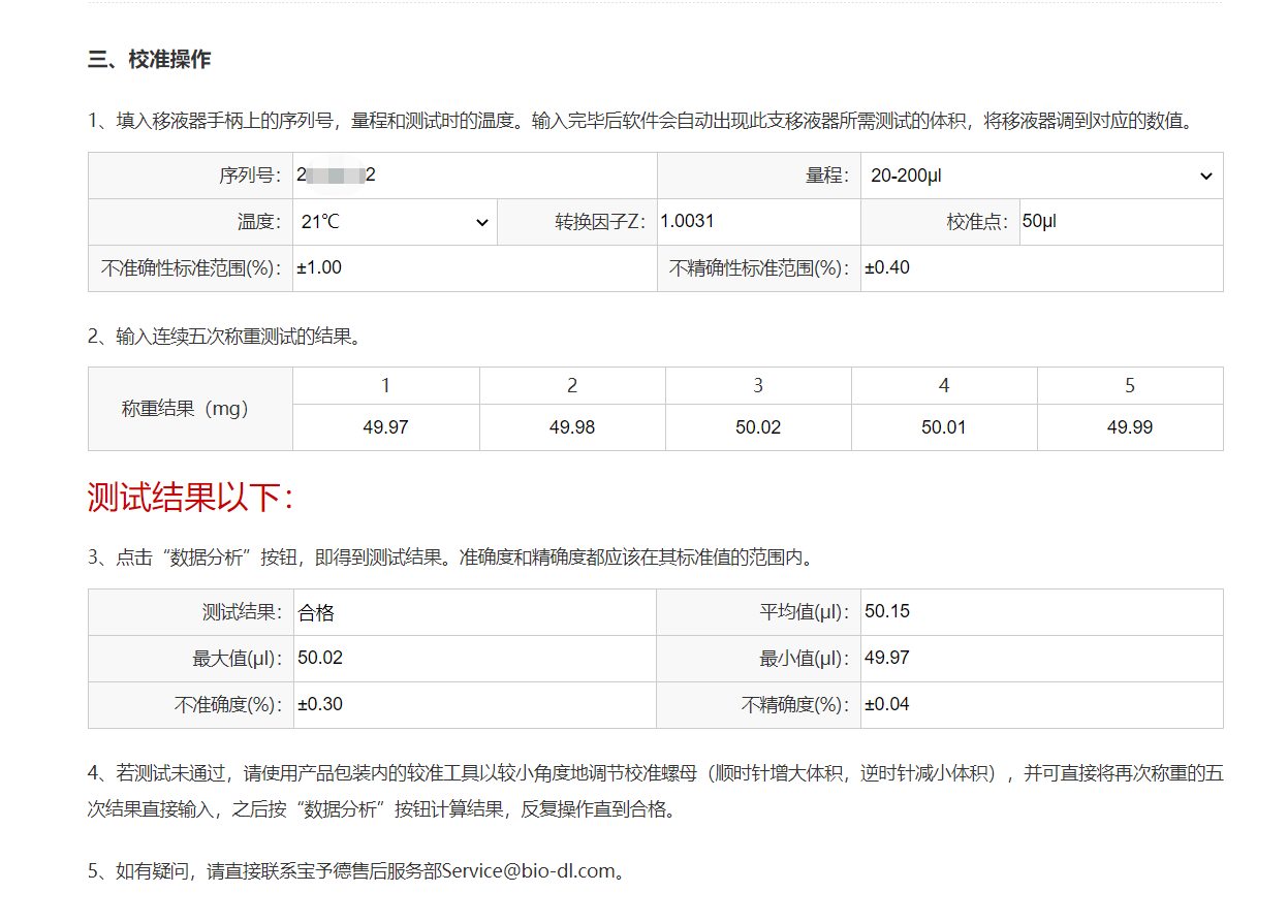 使用寶予德系列移液器的小伙伴們,可以登錄寶予德官方網(wǎng)站進(jìn)行在線校準(zhǔn)(http://www.bio-dl.com/correct.html),根據(jù)網(wǎng)站提示操作,輸入相關(guān)信息則可以立即檢驗(yàn)移液器的準(zhǔn)確度啦,加上配套的小工具還可以直接校準(zhǔn)哦!
