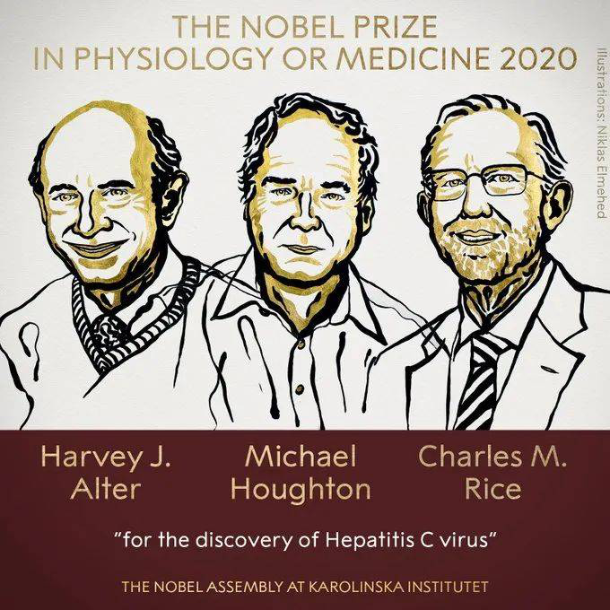 10月5日,在瑞典首都斯德哥爾摩卡羅琳醫(yī)學院,諾貝爾獎委員會總秘書長托馬斯·佩爾曼宣布,2020年諾貝爾生理學或醫(yī)學獎授予Harvey J. Alter, Michael Houghton和Charles M. Rice,以表彰他們在“發(fā)現(xiàn)丙型肝炎病毒”方面作出的貢獻。