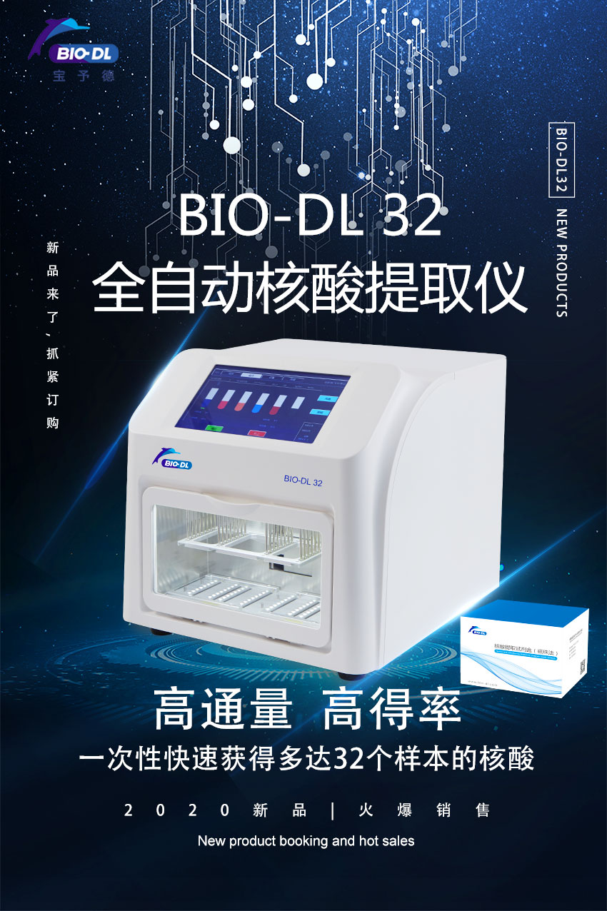 BIO-DL32全自動核酸提取儀,是多年核酸提取經(jīng)驗的結(jié)晶,能夠助您一次性快速獲得多達32個樣本的核酸,并且磁珠回收率高,程序可自由設(shè)置,加上推薦使用的BIO-DL核酸提取試劑盒更能將整個提取時間縮短至15min!