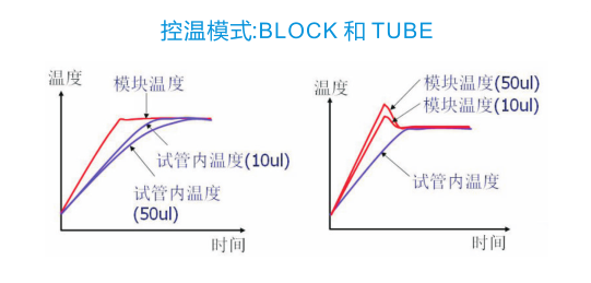 Life Eco具有兩種控溫模式:Block控溫模式、Tube控溫模式。在Block模式下,儀器會根據(jù)探測器直接探測的溫控模塊的溫度進行控制,這種模式適用于長時間的靜態(tài)孵育,如連接、酶切、去磷酸化等。Tube模式實際上是一種模擬試管/PCR板的溫控模式,根據(jù)探測器所探測到的溫控模塊的溫度由微計算機計算出管內(nèi)/PCR板孔內(nèi)樣品液的溫度來進行控制。一般說來,Tube模式更為準確,因為管內(nèi)樣品的溫度無法與溫控模塊同時達到預(yù)設(shè)溫度。因此小寶建議在應(yīng)用LifeEco PCR基因擴增儀時采用Tube控溫模式。